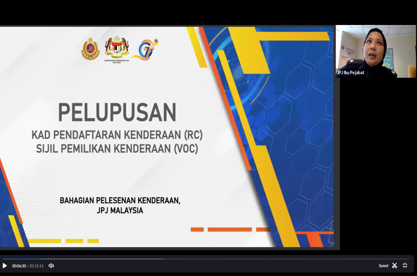 YBrs Puan Azlindayanty Mohd Termizi, Penolong Pengarah Bahagian Pendaftaran dan Pelesenan Jabatan Pengangkutan Jalan Malaysia (JPJ) memberikan taklimat dan penerangan kepada semua peserta dialog yang hadir Kuala Lumpur, 13 Jun 2024: Satu sesi dialog dan perbincangan antara Jabatan Pengangkutan Jalan Malaysia (JPJ) dan pemain-pemain industri insurans dan takaful di…