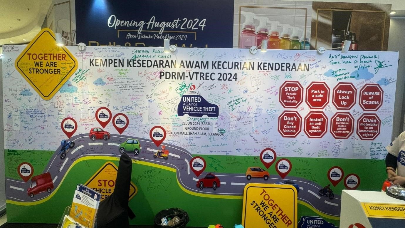 Messages written on ‘Wall of Engagement’ by visitors during 2024 VTREC Public Awareness Campaign on Vehicle Theft at AEON Mall Shah Alam, Selangor SHAH ALAM, 29 June 2024: The Vehicle Theft Reduction Council (VTREC) continues its partnership with Jabatan Pencegahan Jenayah dan Keselamatan Komuniti (JPJKK), Ibu Pejabat Polis Daerah (IPD)…