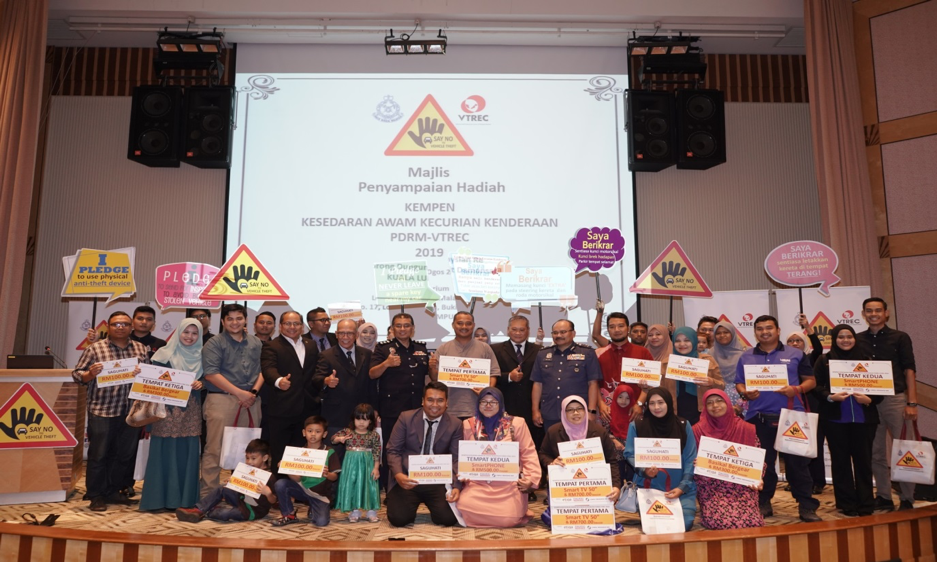 Federal Police YDH Dato’ Huzir bin Mohamed (centre) officiated the PDRM-VTREC Vehicle Theft Public Awareness Campaign 2019 KULA LUMPUR: Vehicle Theft Reduction Council of Malaysia Berhad (VTREC), together with Polis DiRaja Malaysia (PDRM) has officially launched its PDRM-VTREC Vehicle Theft Public Awareness Campaign 2019 with a tag-line “Say No…