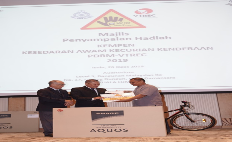 KUALA LUMPUR, 26 OGOS 2019: Vehicle Theft Reduction Council of Malaysia Berhad (VTREC) berbangga dapat bekerjasama dengan Polis Diraja Malaysia (PDRM) dan telah melancarkan Kempen Kesedaran Awam Kecurian Kenderaan 2019 dengan tagline “SAY NO TO VEHICLE THEFT”.