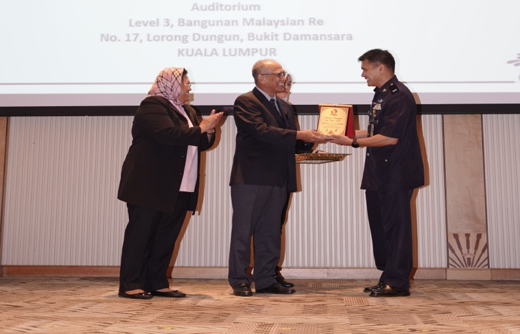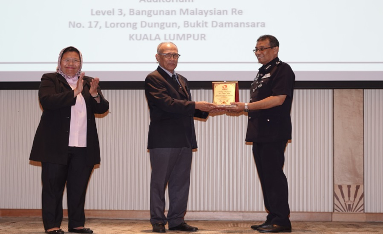 Encik Mohd Yusof Idris, Penasihat Kanan, VTREC diiringi oleh Puan Mas Tina Abdul Hamid, Pengurus, VTREC menyampaikan penghargaan kepada pihak Jabatan Pencegahan Jenayah dan Keselamatan Komuniti, PDRM (JPJKK), Bukit Aman