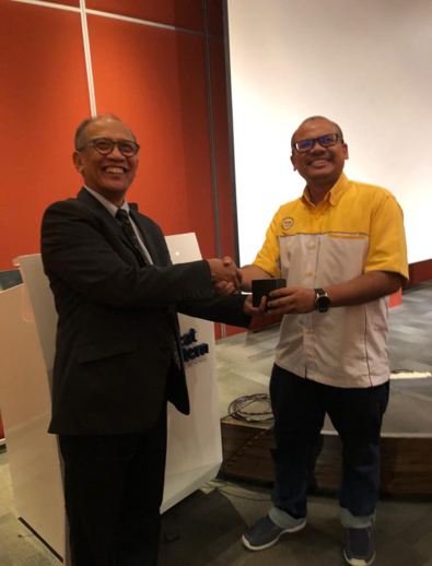 Encik Mohd Yusof Idris received a memento of appreciation from Encik Muhammad Azlan Noor Che Mat of NICS