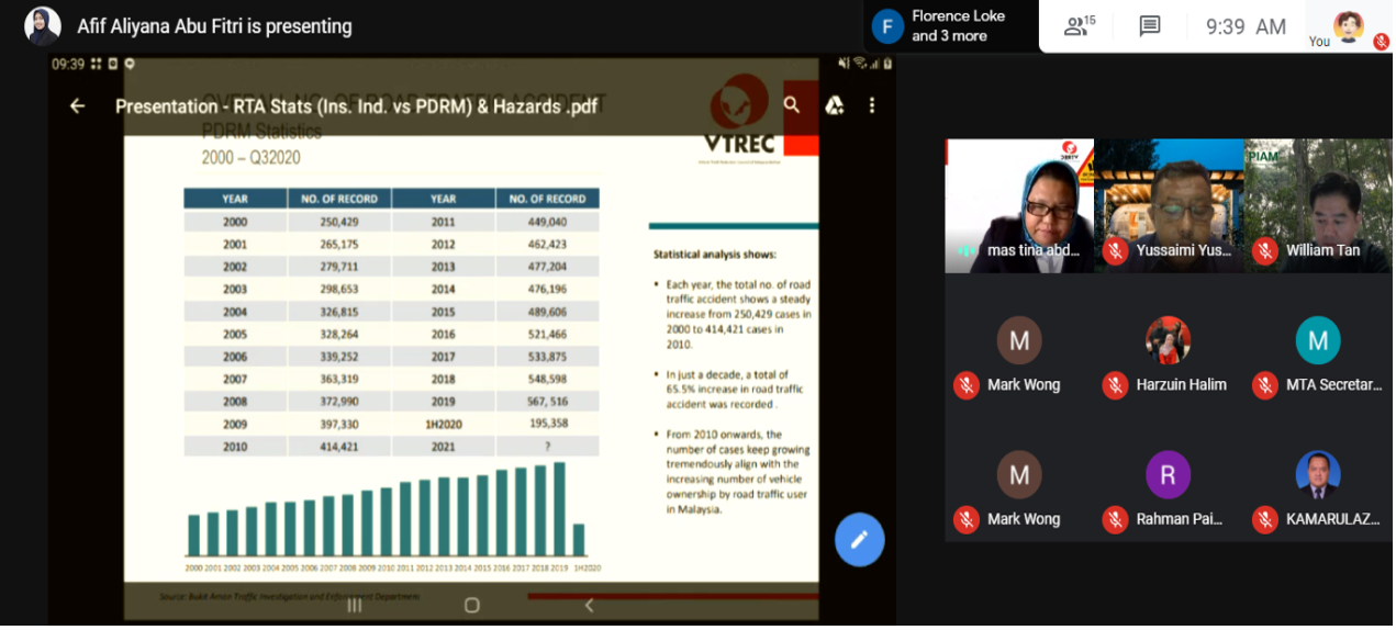 KUALA LUMPUR, 24 February 2021: The Vehicle Theft Reduction Council of Malaysia (VTREC) engaged in an online meet and greet with the Road Safety Division (BKJR) formerly known as JKJR. The session saw a sharing and the latest update on the status of BKJR and their current role after being position under the umbrella of Jabatan Pengangkutan Jalan (JPJ).