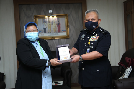 Congratulating the Director on his appointment, YBhg Puan Mas Tina provided an overview of the current status of vehicle theft. YDH CP Dato’ Sri Abd Jalil Hassan welcomed YBhg Mas Tina and entourage for the courtesy call and shared some of his experiences on crime of vehicle theft.