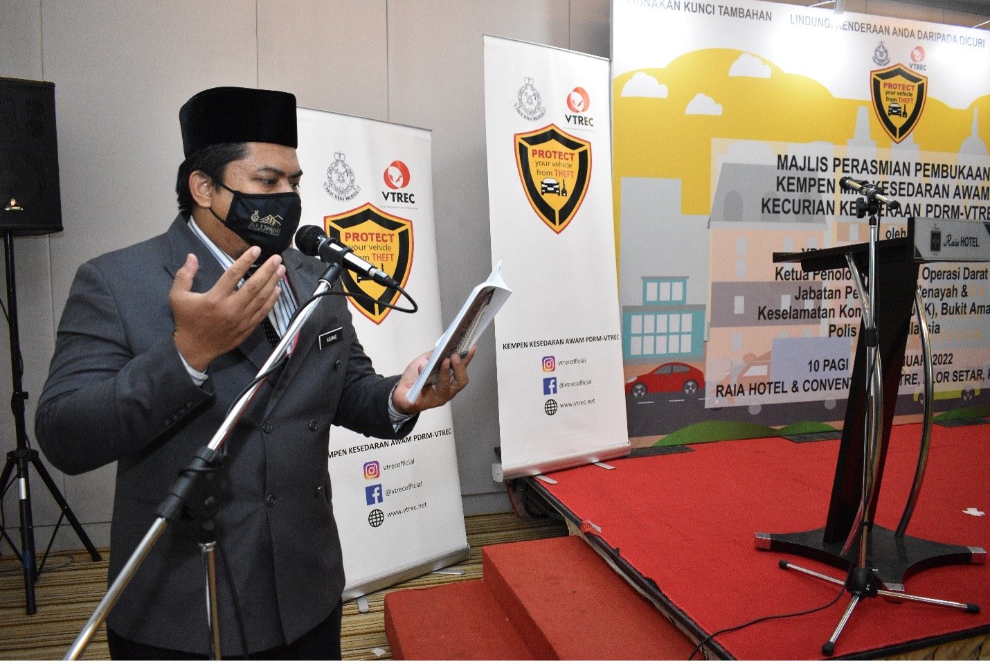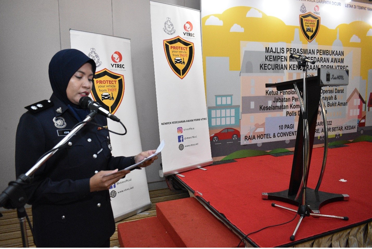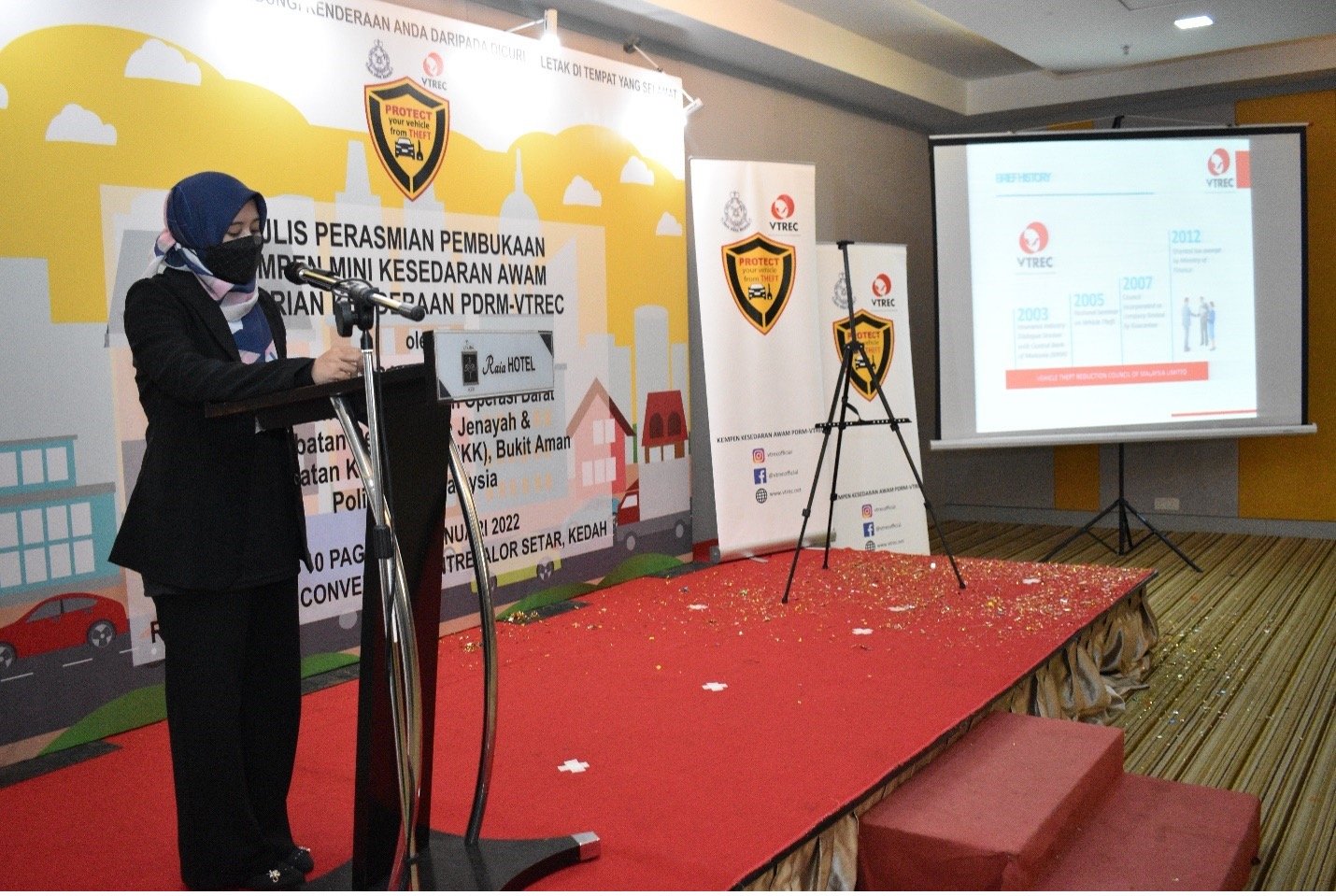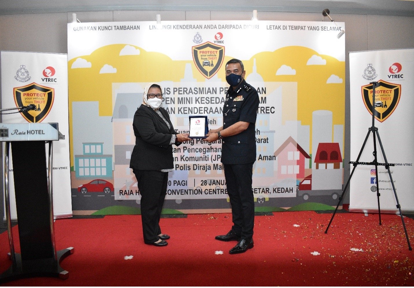 ALOR SETAR, 28 January 2022: The strategic co-operation opportunity between Polis Diraja Malaysia (PDRM) through Jabatan Pencegahan Jenayah dan Keselamatan Komuniti (JPJKK) and Vehicle Reduction Council of Malaysia (VTREC) on vehicle theft mini awareness campaign to further reduce the rate of vehicle theft in the country has been materialised. Vehicle theft awareness rising is a process that seeks to inform and educate the community about vehicle theft with the hope to change motorists’ attitude and behaviour to care and protect their vehicles from being stolen. The event with theme “Protect Your Vehicle from Theft” was held at Raia Hotel and Convention Centre, Alor Setar, Kedah.