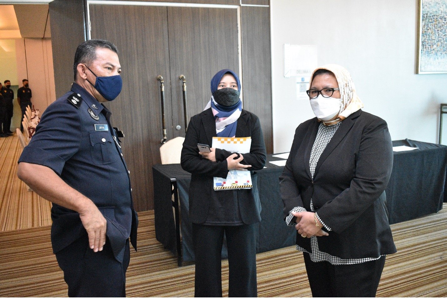 Left: YDH Tuan SAC Alzafny Ahmad, Ketua JPJKK Kedah, YDH Tuan SAC Jamel Salleh, Ketua Penolong Pengarah Operasi Darat, JPJKK Bukit Aman and YBrs Puan Mas Tina Abdul Hamid, Co-ordinator of VTREC.