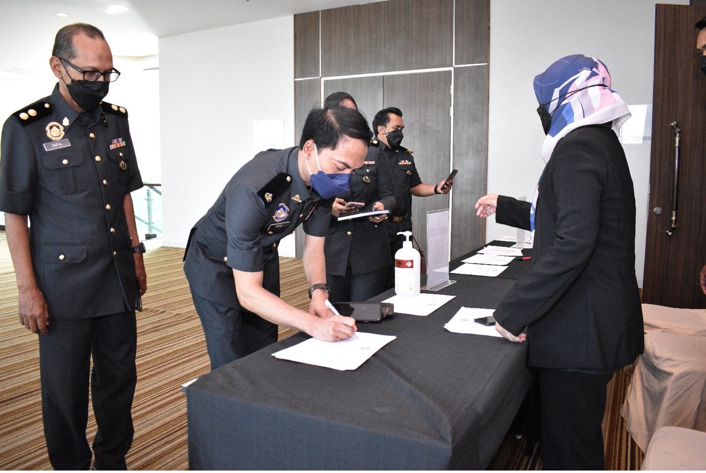 Also present at the event were YDH Tuan SAC Alzafni bin Ahmad, Ketua JPJKK Negeri, Ibu Pejabat Kontijen Negeri Kedah, Officers from Polis DiRaja Malaysia (PDRM) Negeri Kedah, Officers from Jabatan Pengangkutan Jalan (JPJ) Negeri Kedah, Officers from Jabatan Kastam Diraja Malaysia (KASTAM), Negeri Kedah, Officers from Jabatan Imigresen Malaysia (Imigresen), Negeri Kedah, Officers from Kementerian Perdagangan Dalam Negeri dan Hal Ehwal Pengguna (KPDNHEP), Negeri Kedah dan Presiden Gerakan Pengguna Universiti Utara Malaysia (GPSUUM) dan Pemimpin Pelajar dari GPSUUM. The event then moves to Aman Central Mall at Alor Setar for Official Doodle Wall for Public Engagement in conjunction with the official of awareness campaign.