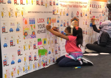 The Doodle Wall provided at the mini campaign is an engagement toolkit to hold engagement with the public on root causes that lead to vehicles being stolen as well as allowing them to leave awareness messages to all vehicle’s owners.