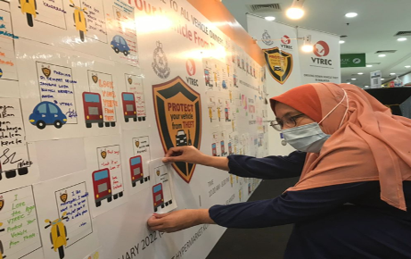 Kota Damansara, 19 February 2022: Vehicle Theft Reduction Council of Malaysia (VTREC) is working in partnership with Jabatan Pencegahan Jenayah dan Keselamatan Komuniti (JPJKK), Polis Diraja Malaysia (PDRM) to educate public and young people about protecting their vehicles and their family vehicles at the PDRM-VTREC Vehicle Theft Public Awareness Mini Campaign. The effort is expected to be able to inculcate the mentality and behavior change to reducing crime of vehicle theft especially within their community areas.