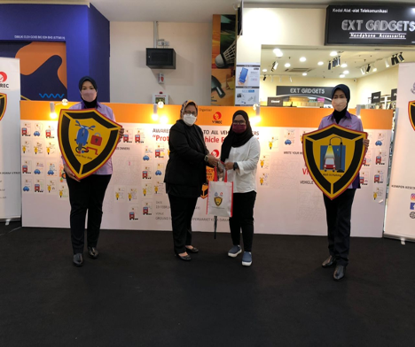 YBhg Puan Mas Tina Abdul Hamid, Co-ordinator of VTREC presented the presents to the Lucky Winner of the Vehicle Theft Quiz at the PDRM-VTREC Vehicle Theft Public Awareness Mini Campaign at Kota Damansara.