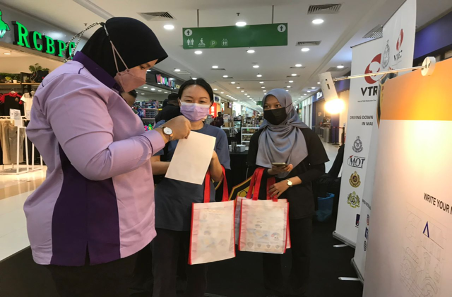 The supports and responses from public at the PDRM-VTREC vehicle theft public awareness mini campaign booth at Giant, Kota Damansara, Selangor where the mini campaign took place were overwhelming, however strict monitoring of Covid19 SOP has hindered any crowd among the participants.