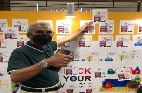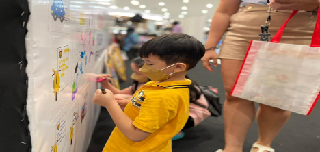 YBhg Puan Mas Tina Abdul Hamid, Co-ordinator of VTREC, assisting one of the participants at the Doodle Wall in conjunction with the Education and Awareness campaign.