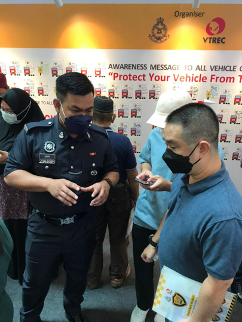 Johor Bahru, 5 April 2022 – Vehicle Theft Reduction Council of Malaysia (VTREC) with the collaboration Polis Diraja Malaysia – Jabatan Pencegahan Jenayah dan Keselamatan Komuniti (JPJKK) yesterday held the vehicle theft protection mini campaign, to promote responsible in protecting vehicles among vehicles owners and public.
