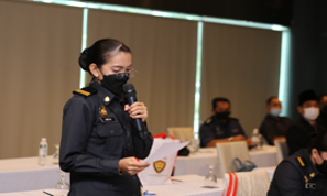 YBrs Puan Afifi Aliyana Abu Fitri, Executive Officer of VTREC, hosting and delivering the vehicle theft and statistics presentation during the seminar.
