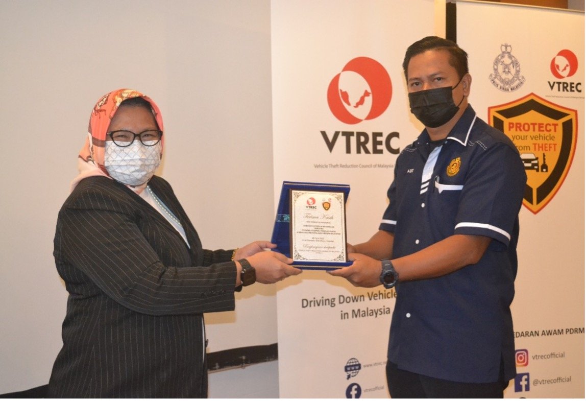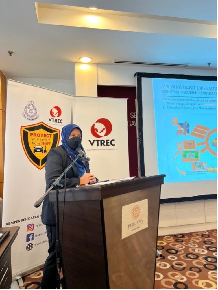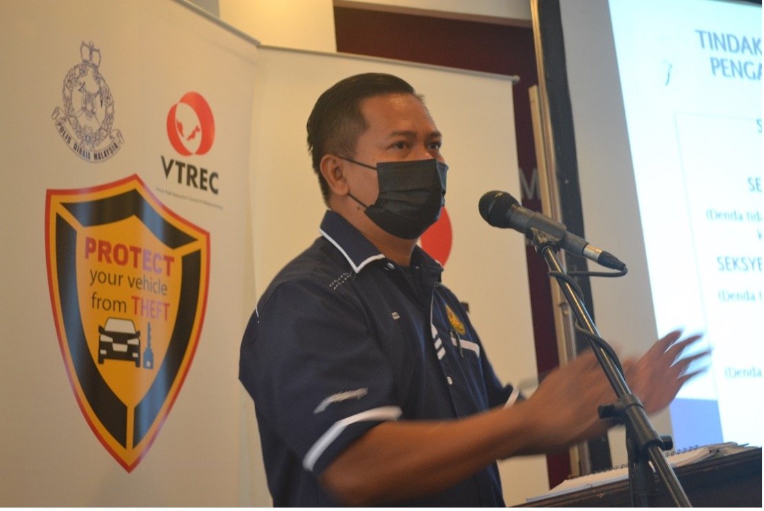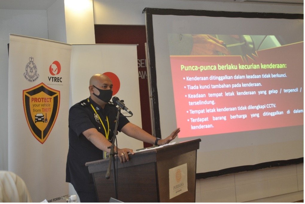 YBrs Encik Muhammad Alif Mohd Adnan, Executive Officer of VTREC presented the statistics on vehicle theft