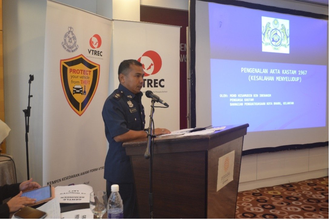 The seminar with the enforcement agencies officers of Kelantan was held with the objectives to initiate the exchange of ideas and expand the knowledge through sharing sessions including the latest information in respect to vehicle theft including smuggling, clone, and stolen spare parts. The expert of each government agency from Kelantan was invited to deliver their presentation and sharing at the Seminar. The Speakers were: