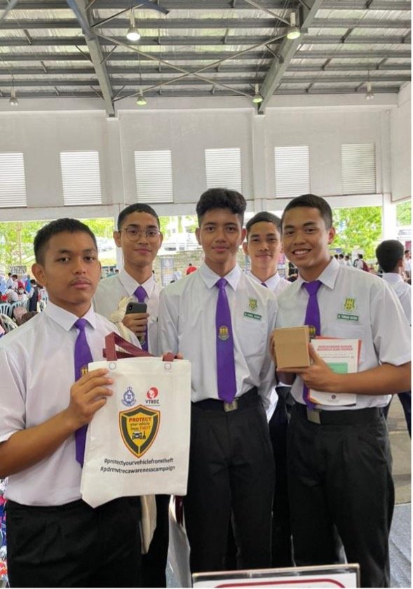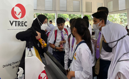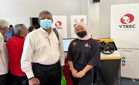 VTREC booth exhibition and public awareness aimed at creating public awareness on protecting their vehicle by keeping it safe and secure. The public is encouraged to install the anti-theft device and audible alarm system among others to use anti-theft devices such as steering wheel lock, gear lock, or window etching. Other than that public can take their level of vehicle security a step further by improving security systems such as immobilizers, alarm systems flashing lights and making a noise sound, and safe keeping of the key knob for keyless car systems.