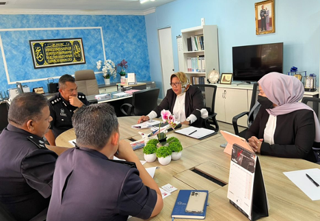 District Police Chief, Assistant Commissioner Mohamad Fakhrudin Abdul Hamid received a courtesy call from the Vehicle Theft Reduction Council of Malaysia (VTREC) led by Puan Mas Tina Abdul Hamid