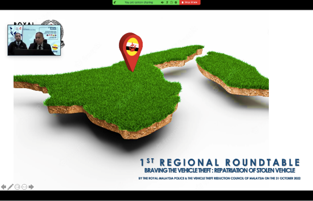 The roundtable provides a venue for the regional countries to share key issues and challenges affecting the regions and the institutions not just vehicle theft crime but other crimes as well. It was a meaningful and fruitful roundtable discussion that covered aspect of vehicle theft and new networking between regional countries. Following the event, there was a plan to hold similar regional roundtable physically in Kuala Lumpur over coming year.