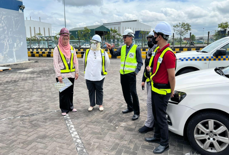 VTREC Management entourage to Westports was led by the VTREC Co-ordinator, Puan Mas Tina Abdul Hamid, also presented were Encik Muhammad Alif Mohd Adnan, Puan Nur Alwanie Iberahim and Puan Izyan Nadiah Mat Din. Puan Mas Tina and her team were taken through the sites by Encik Muhamad Azizul Zahidin, (Government Relations Manager, Westports Sdn Bhd, Port Klang) and Puan Afiqah Hazi (Government Relations Executive, Westports Sdn Bhd, Port Klang) escorted by Polis Bantuan officers to key areas at the port including vessel wharfs, containers platforms and scanner machines sites while monitoring the load carried containers by passing trucks and hauliers.
