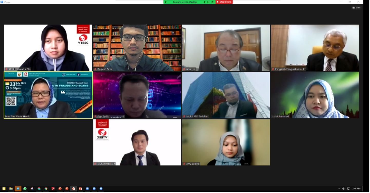 KUALA LUMPUR, 23 July 2021: The Vehicle Theft Reduction Council of Malaysia (VTREC) embarked on vehicle theft engagement related to auto frauds and scams, organised a live webinar entitled “Protect Yourself from Auto Frauds and Scams” for all Malaysian. The webinar was hosted by VTREC as part of VTREC’s role in engaging the stakeholders in combating the vehicle theft crime in Malaysia other than creating awareness towards the public on this particular crime and this time touching on an uprising matter regarding online frauds and scams crime.