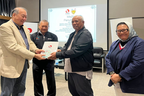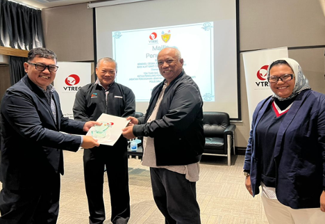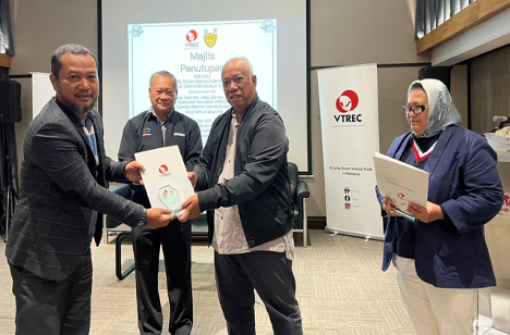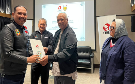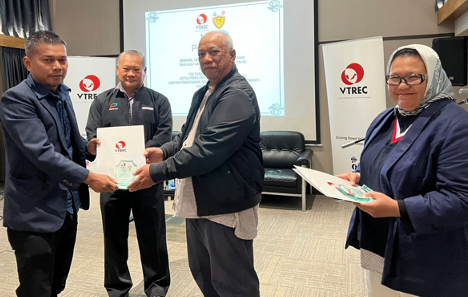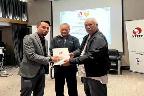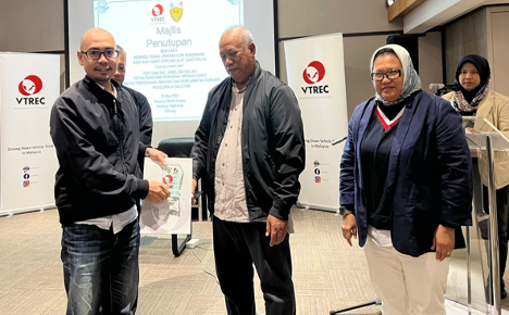 Sitting from left: YBrs Puan Mas Tina Abdul Hamid, Co-ordinator of VTREC, YDH Tuan SAC Jamel Salleh, Ketua Penolong Pengarah Operasi Darat, Jabatan Pencegahan Jenayah dan Keselamatan Komuniti, Polis DiRaja Malaysia, YBhg Dato’ Ooi Win Juat, Director of VTREC cum Heads or Marketing and Advisory of PUSPAKOM Sdn Bhd with all of the participants and secretariat.