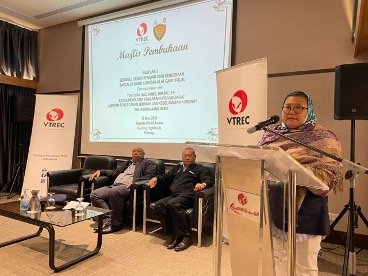 YBrs Puan Mas Tina Abdul Hamid, Co-ordinator of VTREC delivering her Welcome Address at the VTREC Lab 3