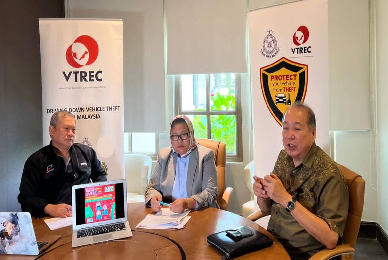 KUALA LUMPUR, 13 April 2023: In it effort to proliferate awareness about the crime of vehicle theft and vehicle safety on the road, Vehicle Theft Reduction Council of Malaysia (VTREC) in collaboration with PUSPAKOM Sdn Bhd (PUSPAKOM) and International Association of Auto Theft Investigators (IAATI), once again greet the public via a thirty-minute Facebook (FB) Live session entitled “Vehicle Theft and Road Traffic Accidents” in conjunction with Hari Raya Aidilfitri celebration.