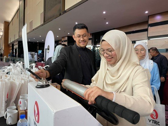 Encik Aniq Denial Fauzi, Executive of VTREC teaches and assists the crowd on how easy and how fast to apply a steering lock via game.
