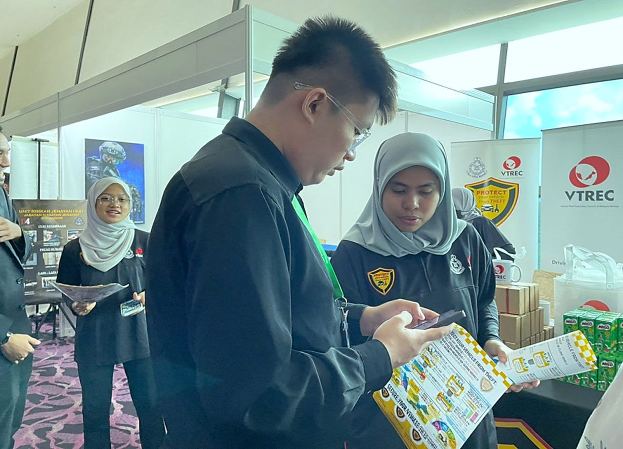 SHAH ALAM, 9 August 2023: The Vehicle Theft Reduction Council of Malaysia (VTREC) joined forces with Selangor Contingent Police Headquarters (IPK Selangor) in engaging with the public to advocate vehicle theft crimes in conjunction with “Seminar Pembangunan Modal Insan dan Sahsiah Diri di bawah Program Permuafakatan Polis DiRaja Malaysia (PDRM) oleh Kementerian Pendidikan Malaysia (KPM)” at IDCC Ideal Convention Centre Shah Alam, Selangor.