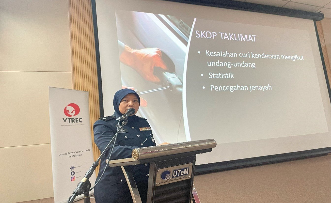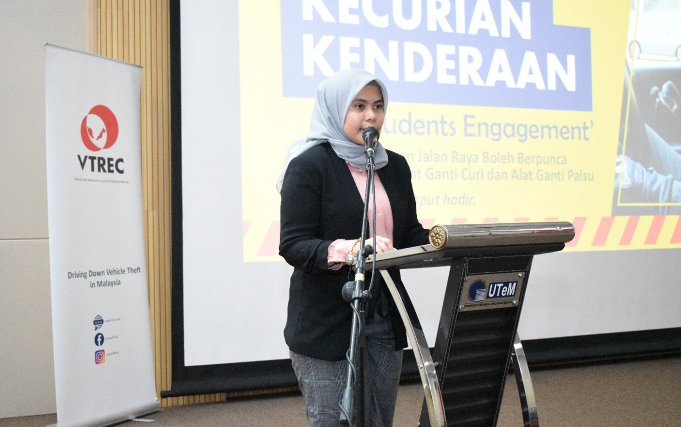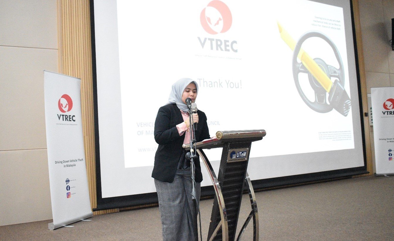 Meanwhile, Puan Mas Tina Abdul Hamid, Co-ordinator of VTREC, said establishing engagement with the students and co-operation with UTeM and SUKSIS is one of the Council’s initiatives in executing the knowledge sharing and best practice sharing in combating vehicle theft among the students in particular.