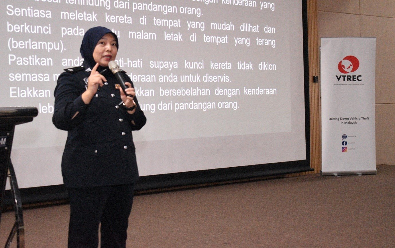 A panel of experts on the subjects of vehicle theft and traffic accident is also gathered by the events, including representatives from Polis Diraja Malaysia and Jabatan Pengangkutan Jalan Malaysia. The panellists presented information, ideas, techniques, facts, statistics, and solutions to avoid becoming a victim of vehicle theft.
