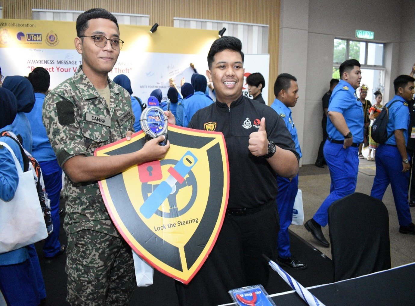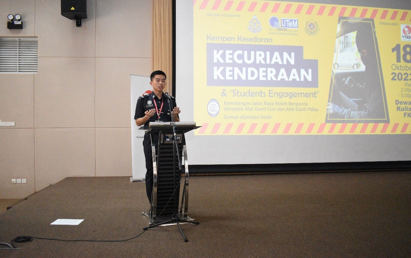 The event was officiated by YBhg Professor Madya Datuk Dr. Sabri Mohamad Sharif, Timbalan Naib Canselor Hal Ehwal Pelajar & Alumni, Universiti Teknikal Malaysia Melaka. The engagement event aimed at rising awareness of crime of vehicle theft, transfer of knowledge and the prevention of vehicles from being stolen including stolen of vehicle spare parts. More than 250 students from various Pasukan Pakaian Beruniform such as Kor Sukarelawan Siswa Siswi, Kor Siswa-Siswi Pertahanan Awam, and Pasukan Latihan Pegawai Simpanan of Universiti Teknikal Malaysia Melaka participated in the event.