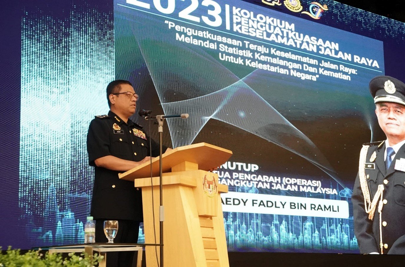 YBrs Tuan Aedy Fadly Ramli, Timbalan Ketua Pengarah (Perancangan dan Operasi) JPJ delivering closing remark at Safety Enforcement Colloquium 2023