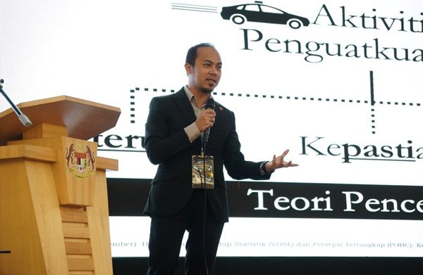 Speaker 1: YBrs Dr Ahmad Azab Ab Rashid, Ketua Pegawai Penyelidik, The Malaysian Institute of Road Safety Research (MIROS) delivered his presentation as the first speaker on “Value of Statistical Life (VOSL) & Hubungannya dengan Perception of Being Caught (POBC): Keberhasilan Pendekatan 3E [Enforcement]” at Safety Enforcement Colloquium 2023