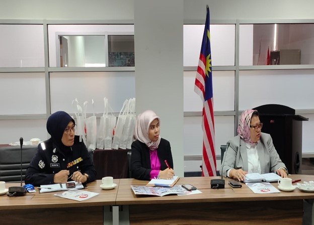 YBrs Puan Mas Tina Abdul Hamid, Co-ordinator of VTREC sharing on how critical for motorists to possess an insurance coverage including for foreigners driving into Malaysia during the VTREC-Imigresen friendly meeting