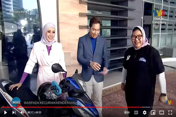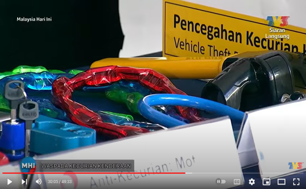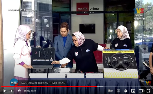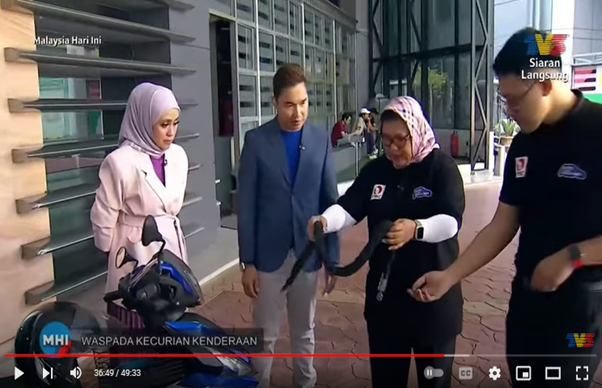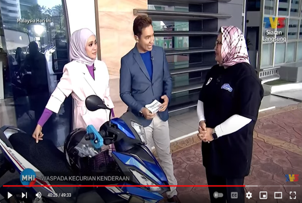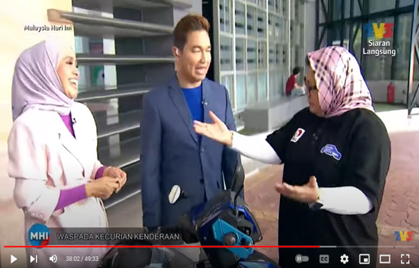 According to YBrs Puan Mas Tina, ‘It is indeed crucial to change our behaviour in protecting their vehicle against vehicle theft and avoid to be a victim. Beside public must always be vigilant, never take their vehicle protection for granted and not to provide opportunities for vehicle theft crime as well as heighten awareness about vehicle theft prevention, nevertheless to cover your vehicles be it motorcycle or car to deter or attract a potential thief, ” when asked to provide her final words during the TV3 MHI event.