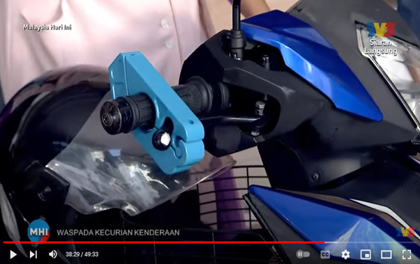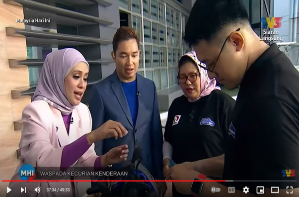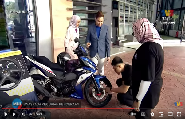 Besides Car anti-heft demonstration, Motorcycle anti-theft devices were also displayed for viewers’ better understanding during the MHI – VTREC talk on “Waspada Kecurian Kenderaan”, explaination was made by Puan Mas Tina, Co-ordinator of VTREC to the hosts watching both Encik Fadzly Fuad dan Puan Hazrena Kassim.