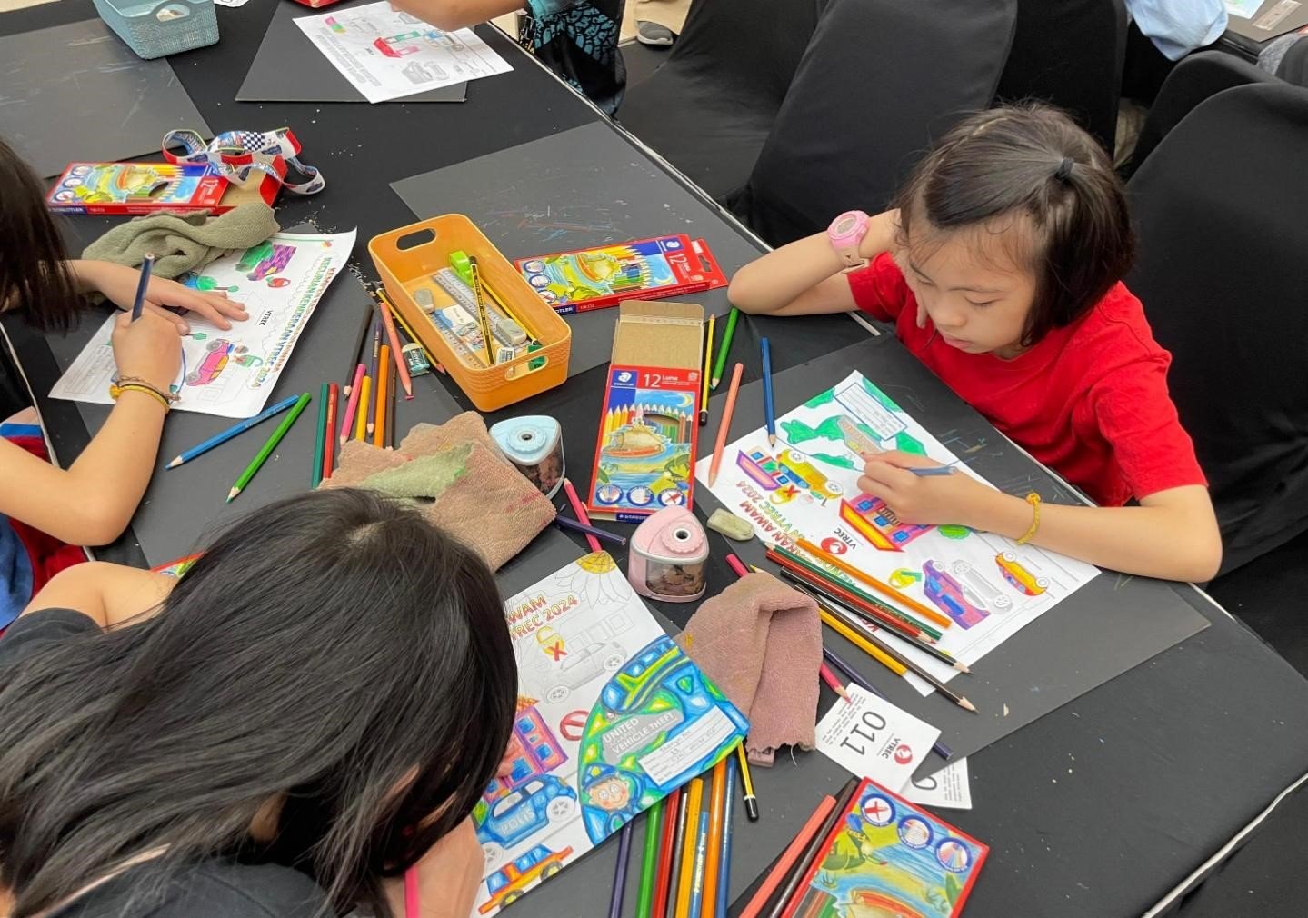 Various activities were organised to motivate people to take action, participate, support, and pledge. These included an engagement wall, wheel of fortune, steering lock competition, quizzes, doodle wall, and, as the highlight of the mini-campaigns, a primary school colouring contest. This contest attracted up to 30 children aged between 5 and 12 years old. The colouring competition was held from 1:00 pm to 3:00 pm at the same venue. Each participant had the chance to showcase their creativity on the provided drawing paper. The primary goal was to ensure that contestants could help raise awareness about vehicle care from an early age.