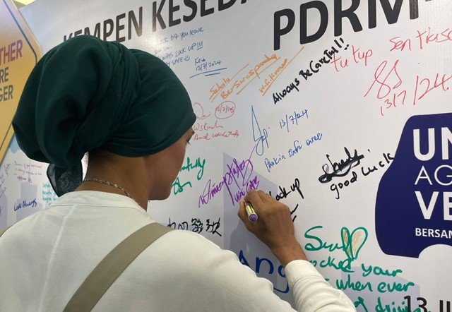 Sergeant Major Tuan Zulkefli Dahalan engaged with the public and explained campaign-related topics while the colouring competition was taking place.