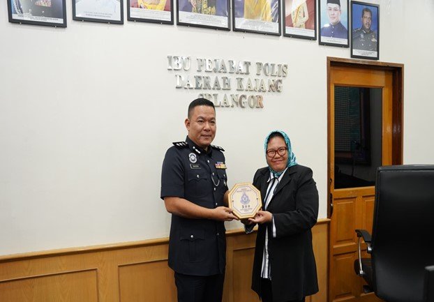KAJANG, 16 July 2024: The Coordinator of the Vehicle Theft Reduction Council of Malaysia (VTREC), Puan Mas Tina Abdul Hamid paid a courtesy visit to the newly appointed Ketua Polis Daerah Kajang, YDH ACP Tuan Naazron Abdul Yusof at his office, IPD Kajang, Selangor.