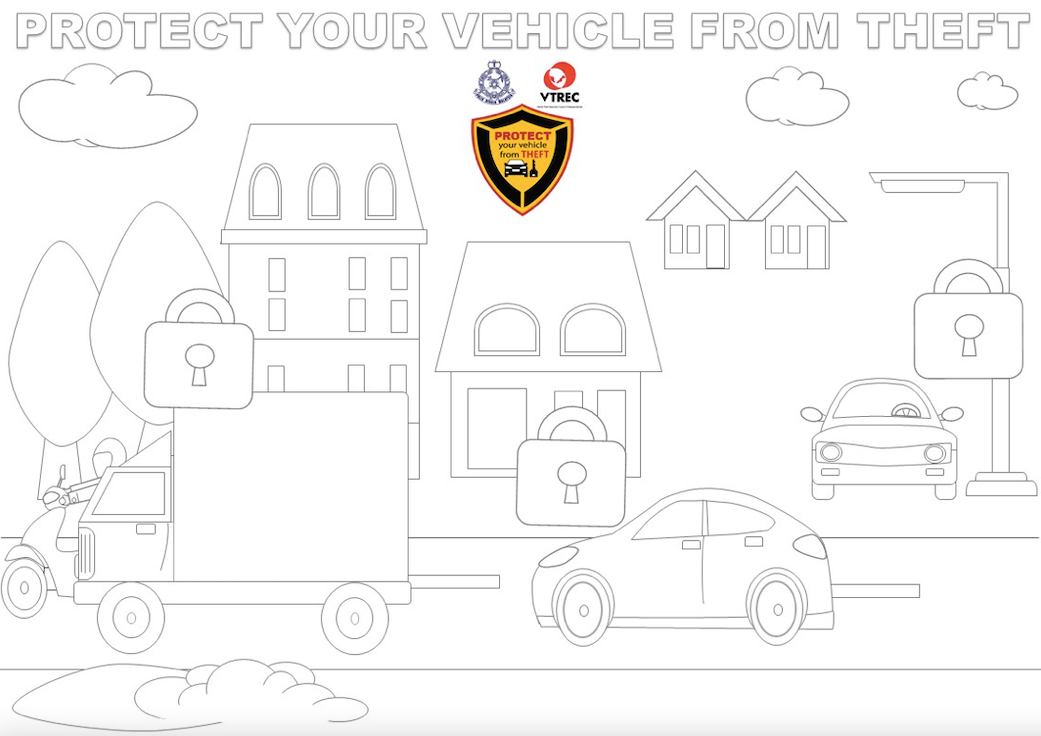 - For submission, contestants must snap selfie with the complete art sheet, Follow and Like VTREC Facebook or Instagram @vtrecofficial, then upload your complete art sheet on Instagram, tag @vtrecofficial and tag 3 of your friends, and write hashtags #VTRECColouringContest and #protectyourvehiclefromtheft.