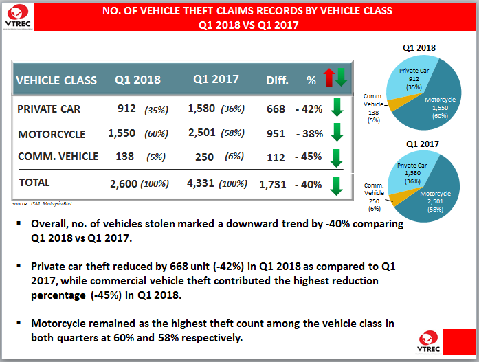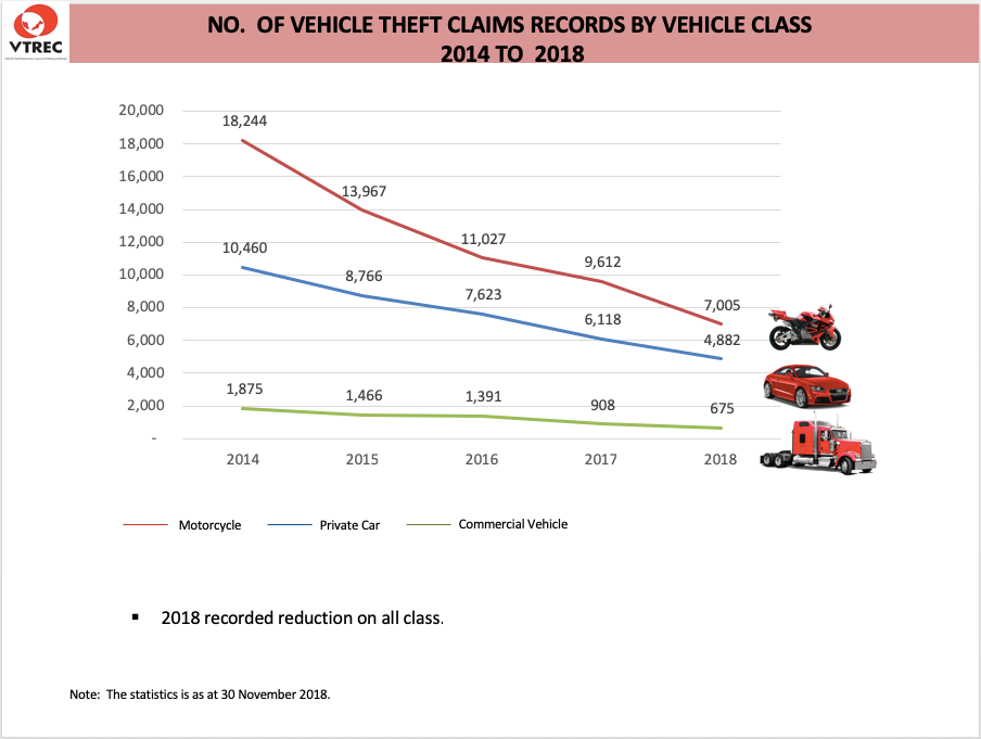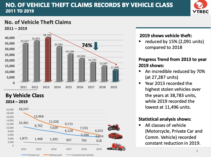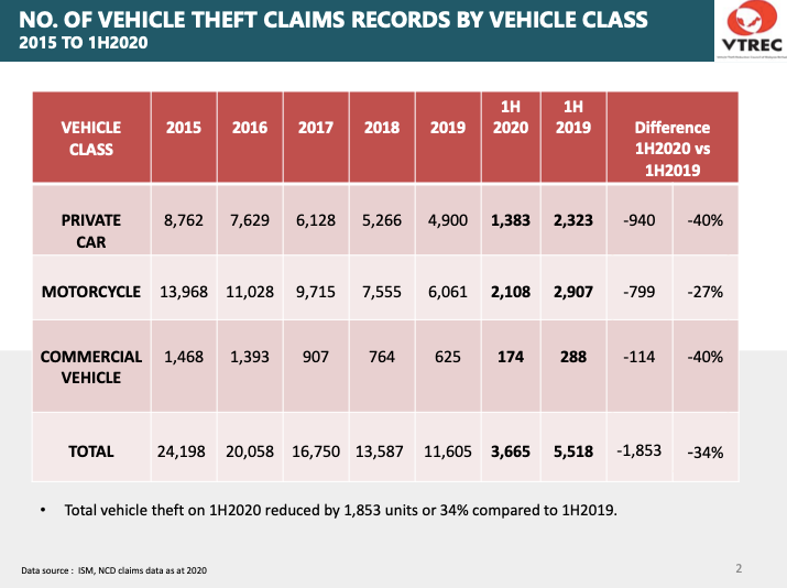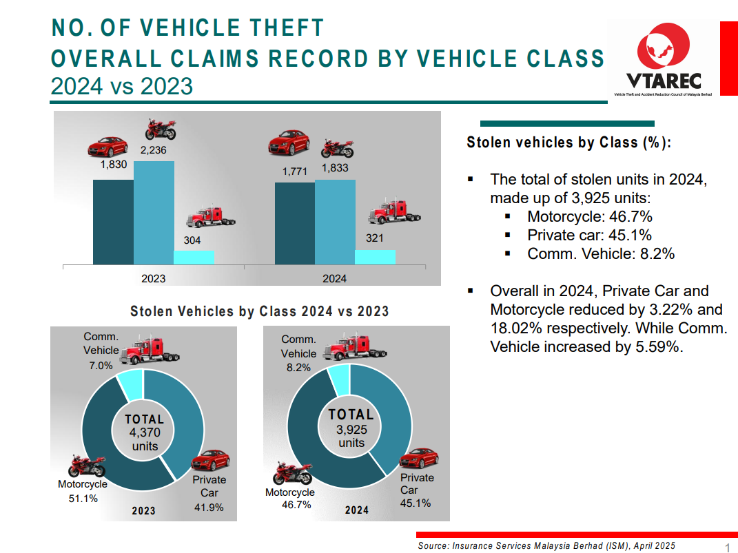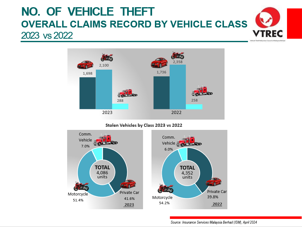 NO. OF VEHICLE THEFT OVERALL CLAIMS RECORD BY VEHICLE CLASS 2024 vs 2023