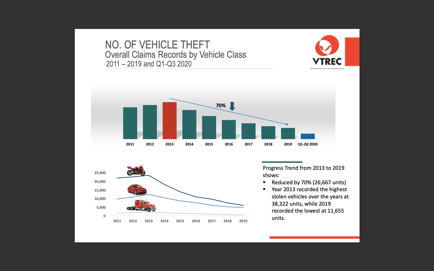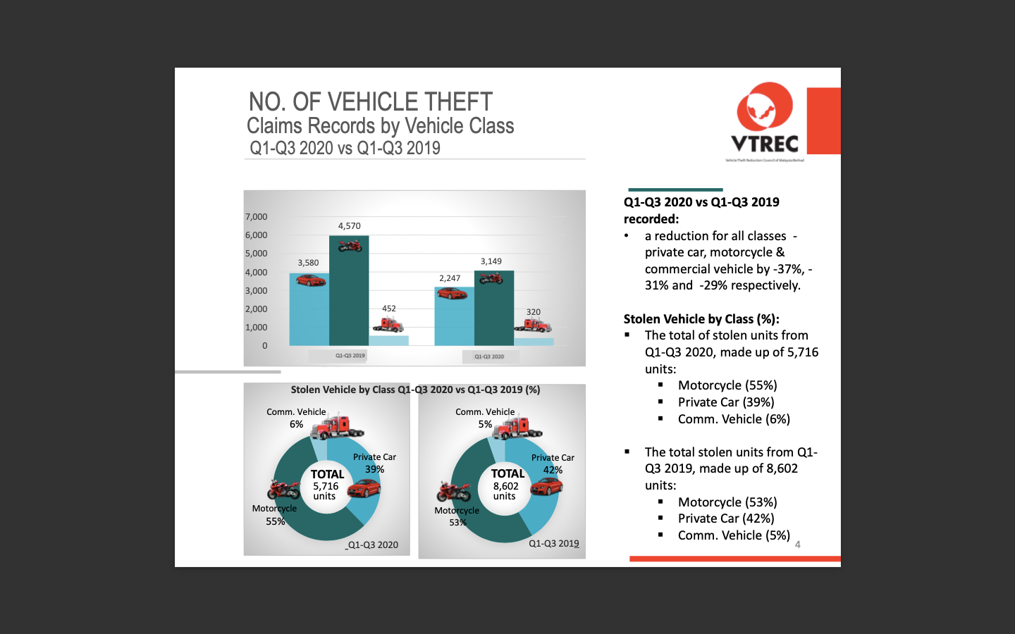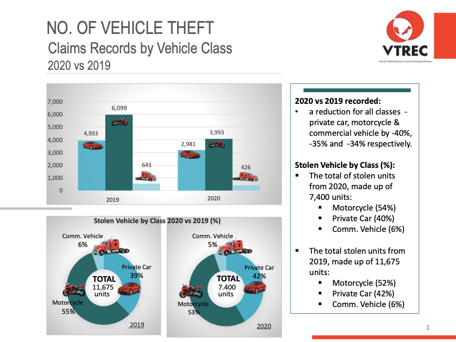 NO. OF VEHICLE THEFT OVERALL CLAIMS RECORD BY VEHICLE CLASS 2024 vs 2023