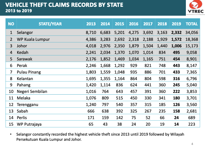 Overview Q3 2019 Industry Vehicle Theft Statistics