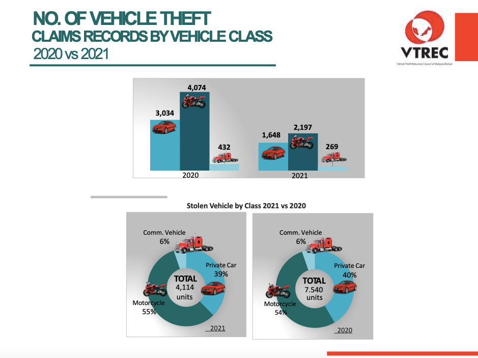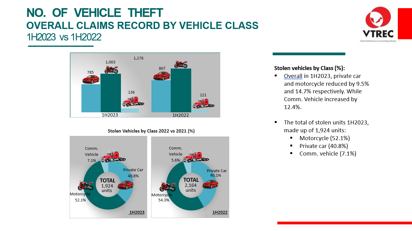NO. OF VEHICLE THEFT OVERALL CLAIMS RECORD BY VEHICLE CLASS 2023 VS 2022