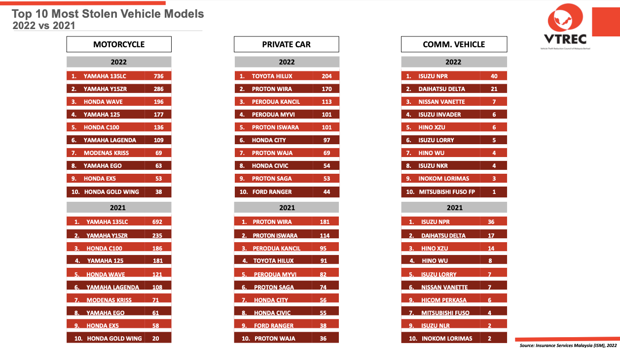 TOP 10 MOST STOLEN VEHICLE 2022 VS 2021 BY MODEL