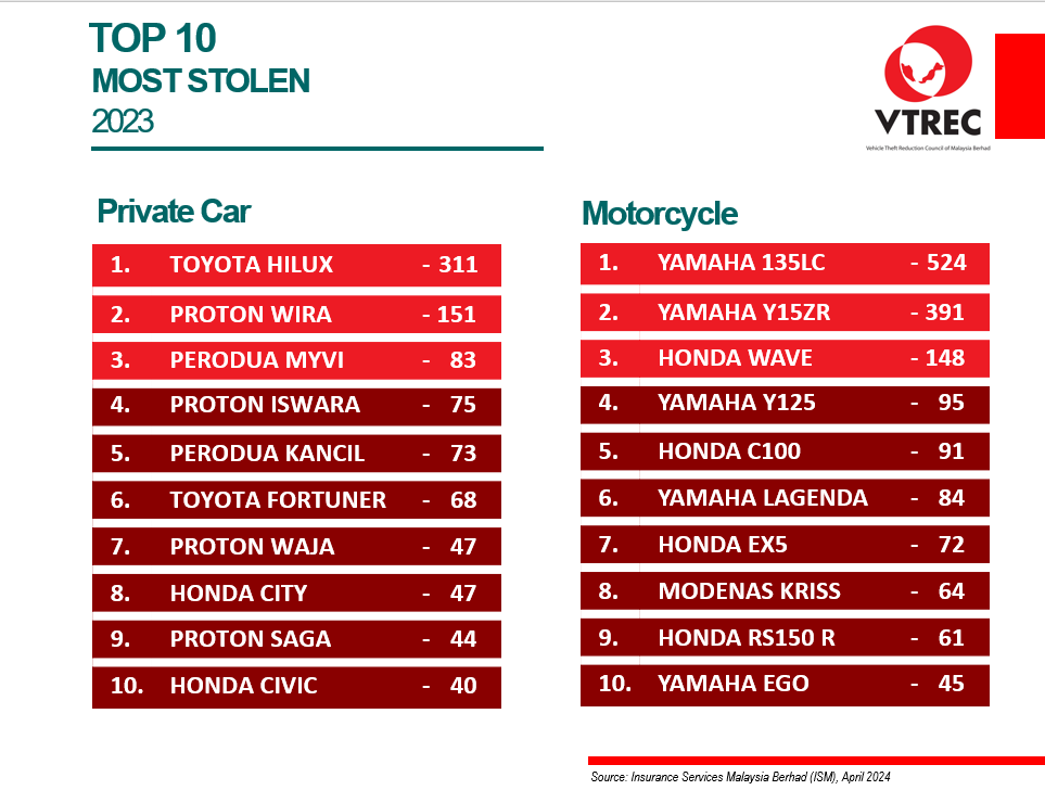 TOP 10 MOST STOLEN 2023