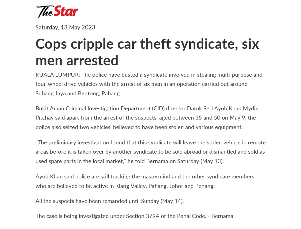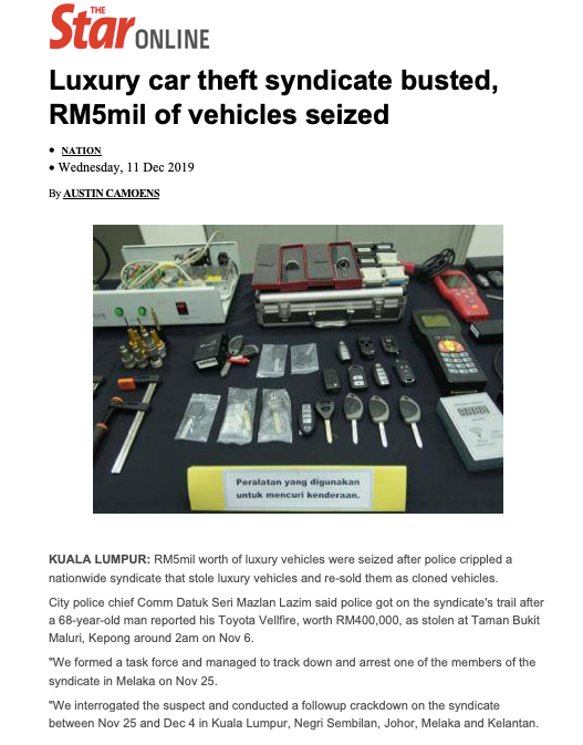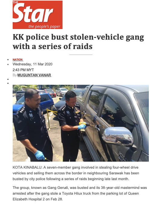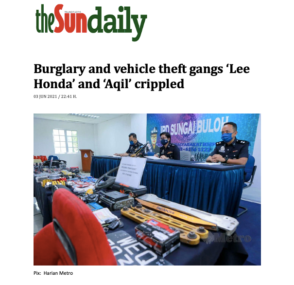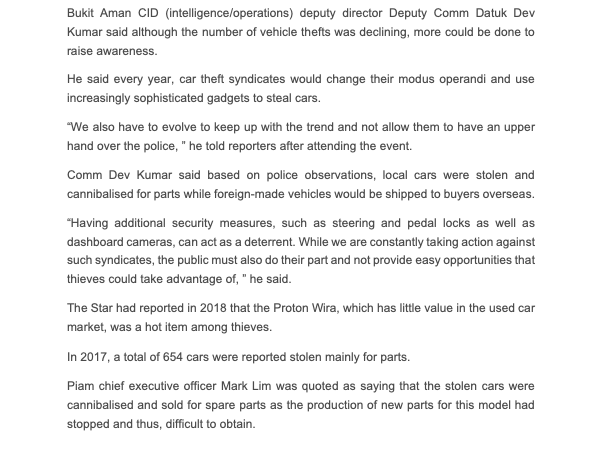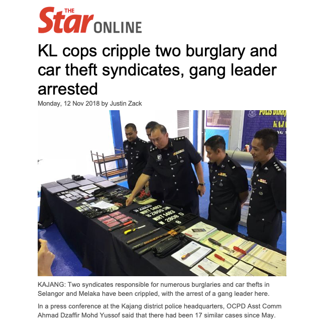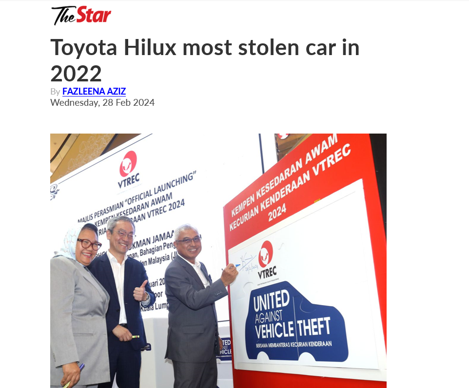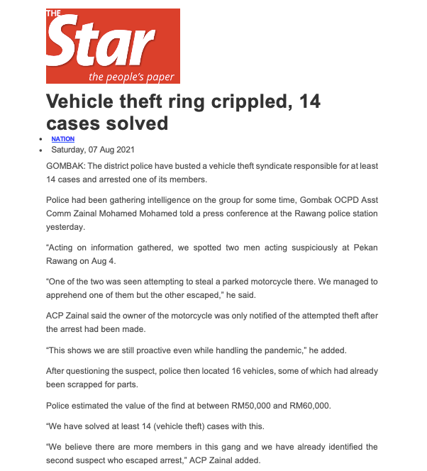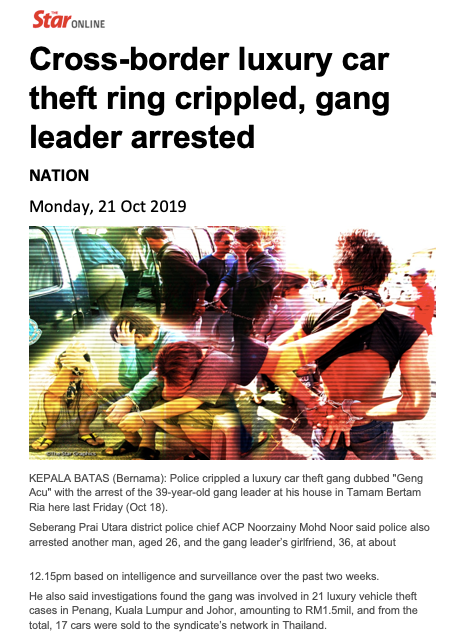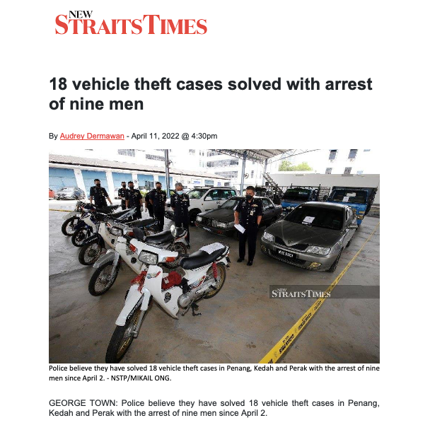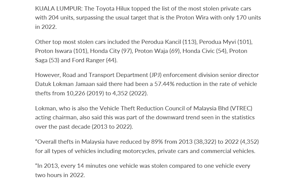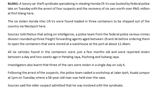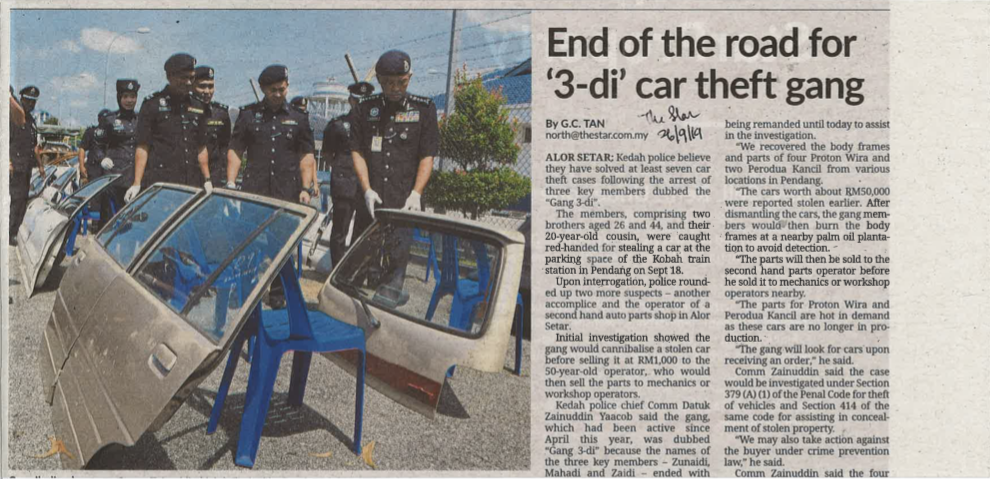 - “The different views of crime” – Malaysian car theft reduced by 20%