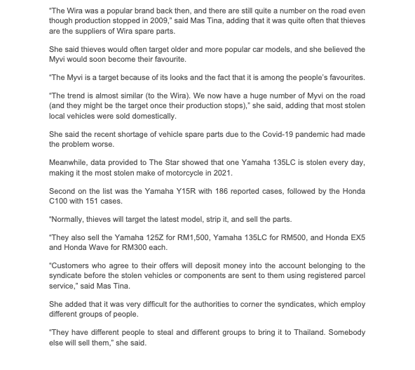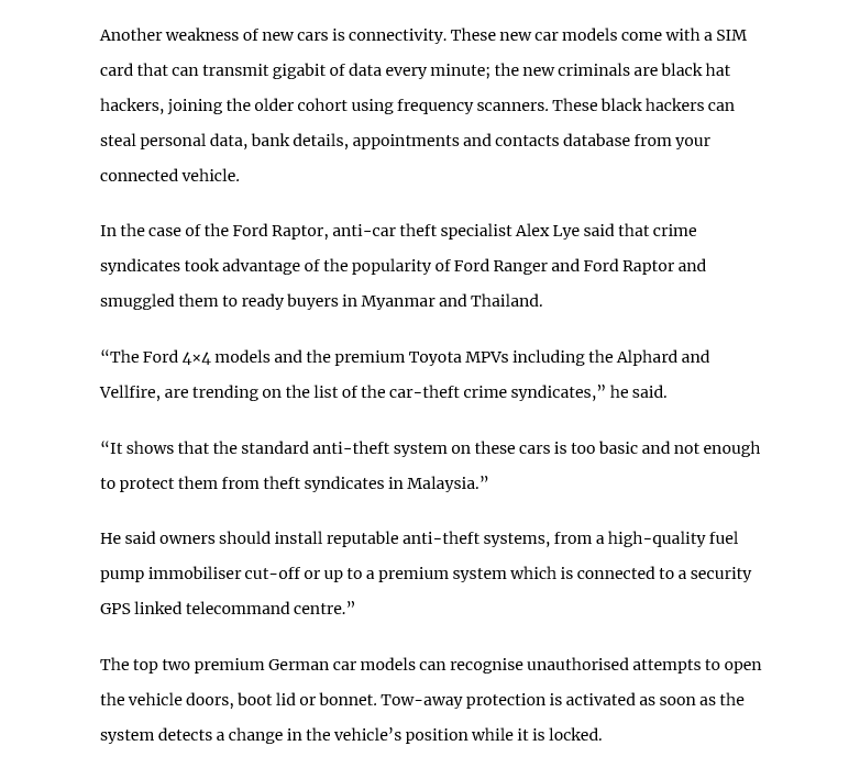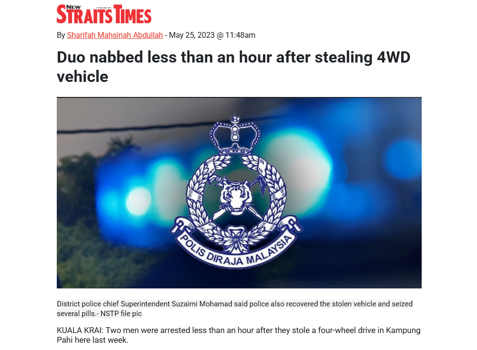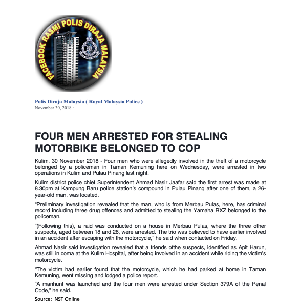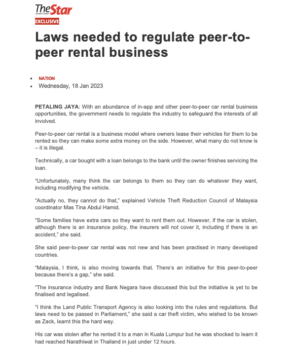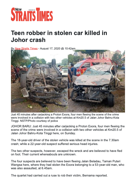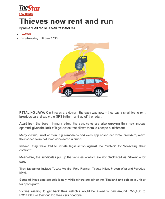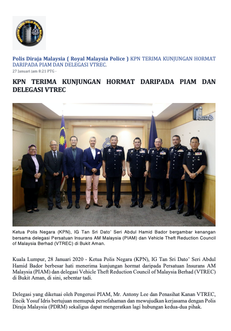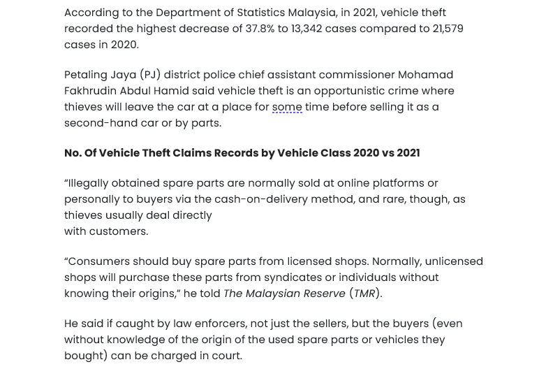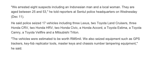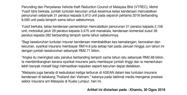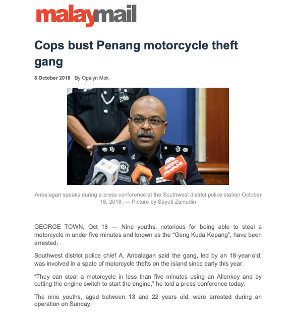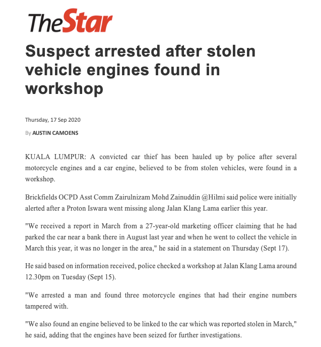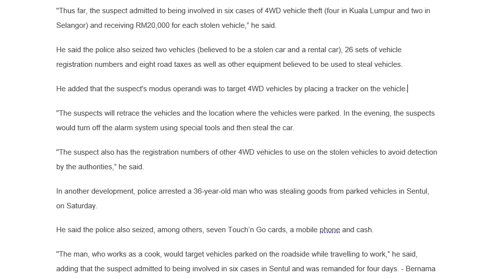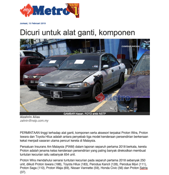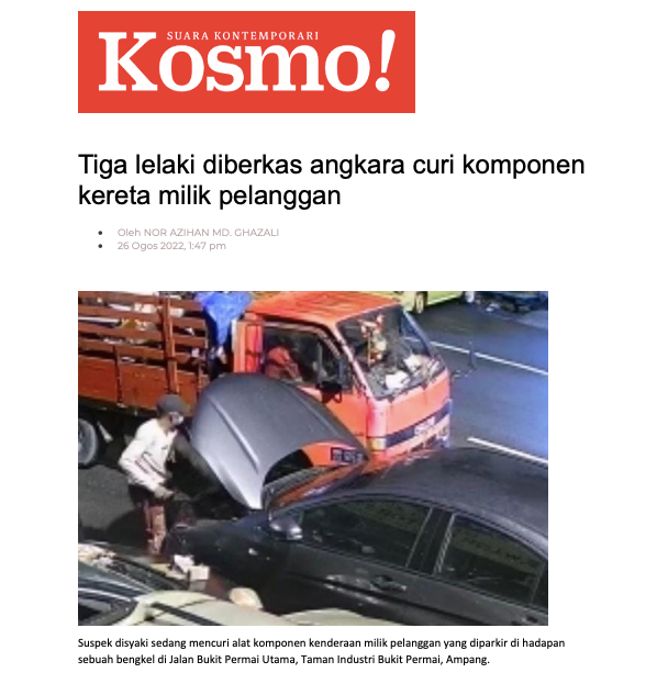 - “The different views of crime” – Malaysian car theft reduced by 20%